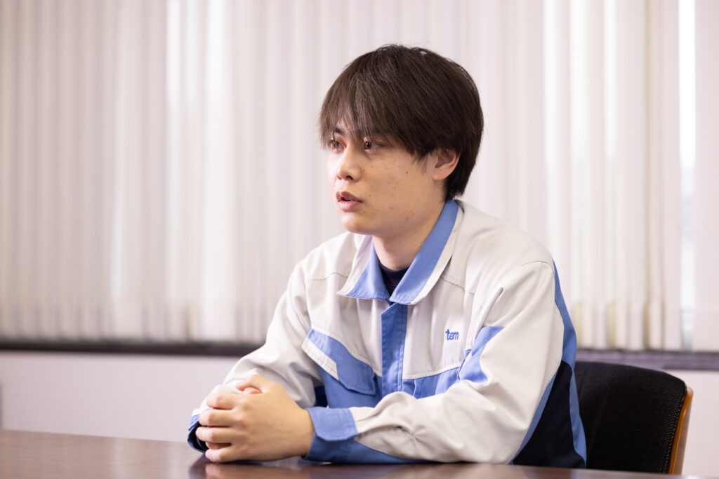 就職活動では社内システムの保守・管理を担う社内SE(システムエンジニア)を募集している企業を数社受け、そのなかでもTAMはプログラムを自社開発しているほか、ネットワーク関連にも関われて、いろいろなことに挑戦できそうな点に魅力を感じて入社を決めました。ICT推進課では社内プログラムの開発や管理、サーバー等の保守管理を担当していますが、入社前に感じていたとおりの挑戦させてくれる社風です。包装機については分からないことが多いのですが、コンビニなどでTAMの機械が関係する製品を目にすると嬉しくなります。